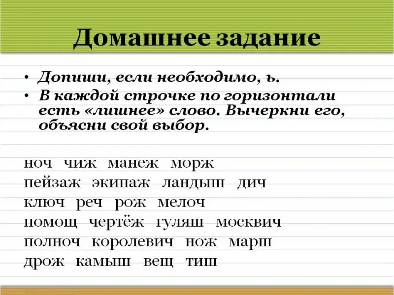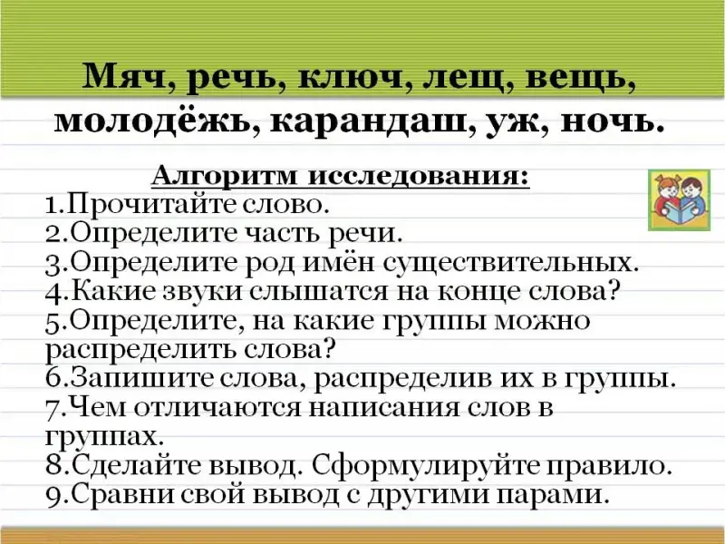 - Подумайте, можно ли утверждать, что «Ь» знак обозначает мягкость шипящих на конце существительных женского рода? Обоснуйте своё мнение.
