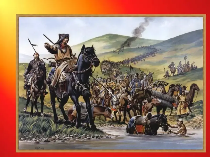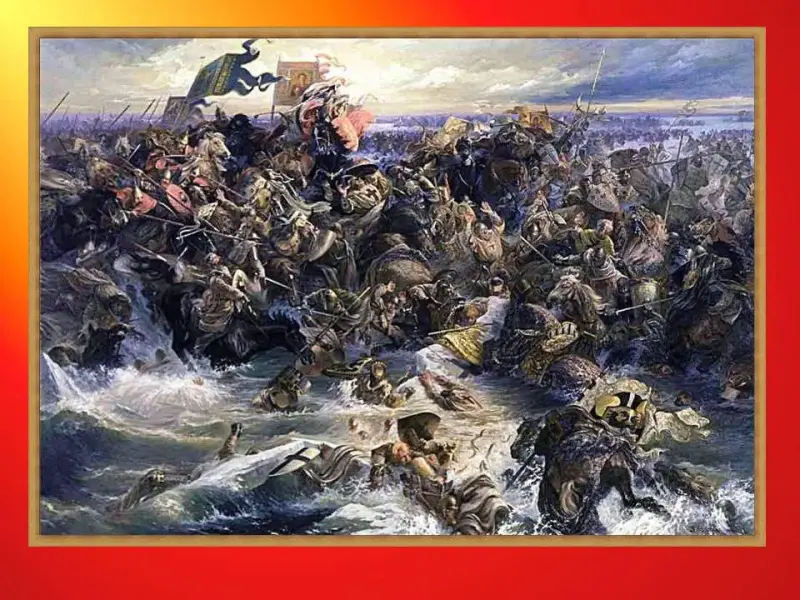 монгольский хан Батый собрал огромную армию и перешел Волгу. Захвачены и разорены многие русские города и поселения (Рязань, Владимир, Киев). Несколько веков подряд Русь была порабощена Золотой