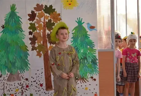 Ребёнок 4 (Осина-Краснощёчка): Как бы не так! Мои листья осенью самые яркие, и они так красиво трепещут на ветру! Из моих почек, листьев и коры делают лекарства, которые улучшают аппетит, снимают боль и понижают температуру. На моих ветвях щебечут птички и всех радуют. Я - самая нарядная и полезная!