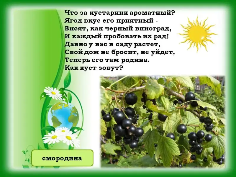 Как куст зовут? (Чёрная смородина)В лесу расту я маленькой,
