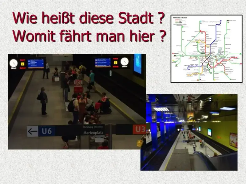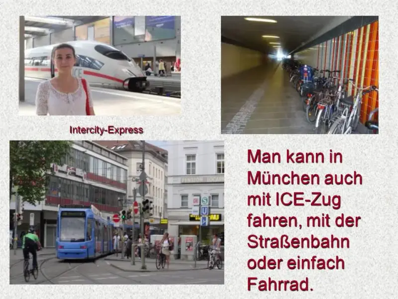 - Das ist in Deutschland. München. Hier fährt man Fahrrad sehr oft.Auch fährt man mit der U-Bahn und dem Zug.