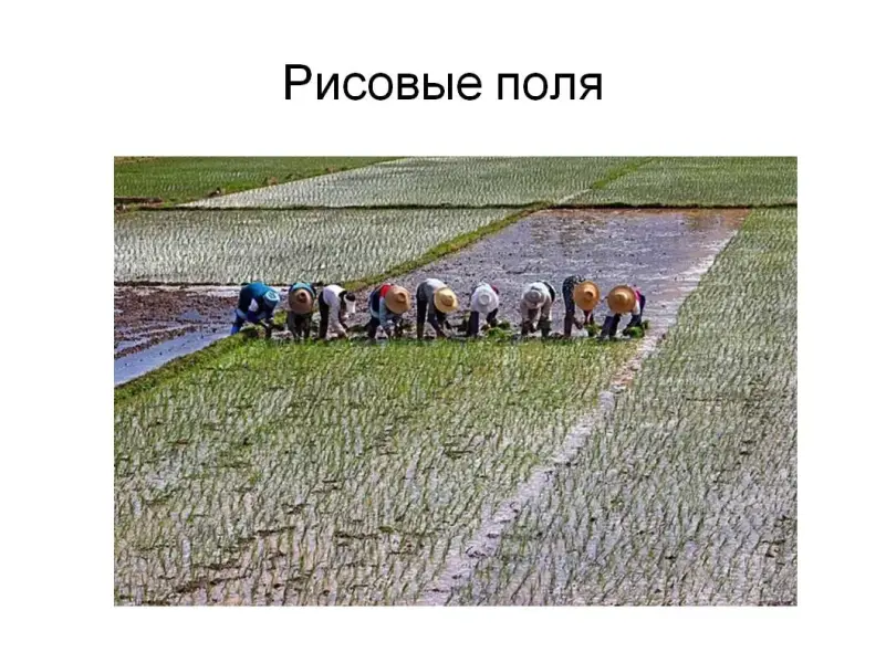 затем заливали её полуметровым слоем воды. Перед сбором урожая воду с полей спускали. Урожай убирали вручную, срезая серпом каждое растение. Крестьяне пели: