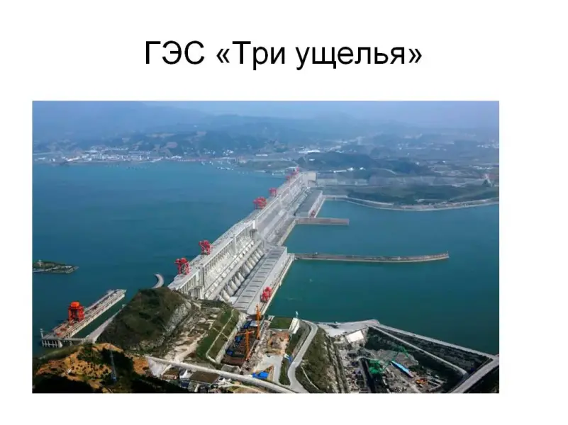 В районе трёх ущелий на реке Янцзы сооружена мощная ГЭС, вырабатывающая много электроэнергии.