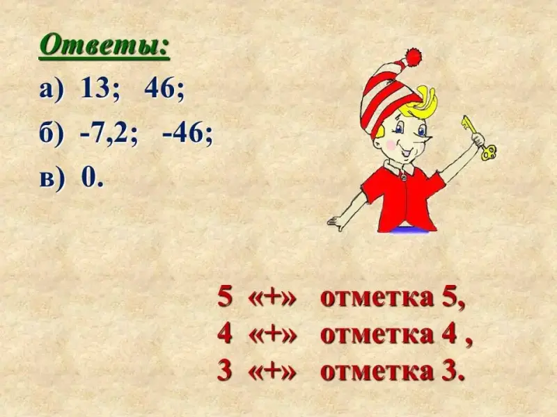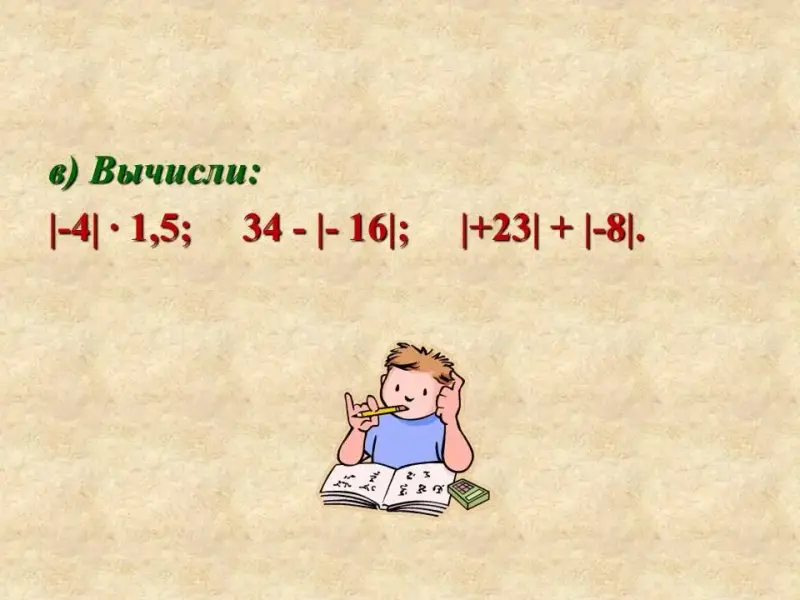 в) Вычисли: |-4|1,5; 34 - |- 16|; |+23|+|-8|. (слайд № 12)