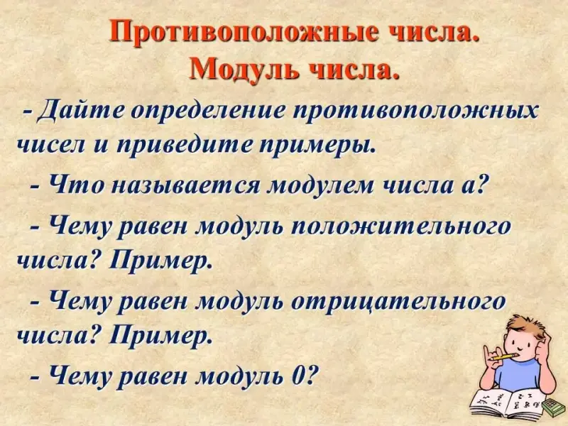 Повторим о противоположных числах, модуле числа (слайд № 9)