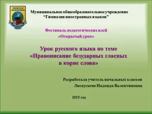 Урок русского языка на тему «Безударные гласные в корне слова». 2-й класс