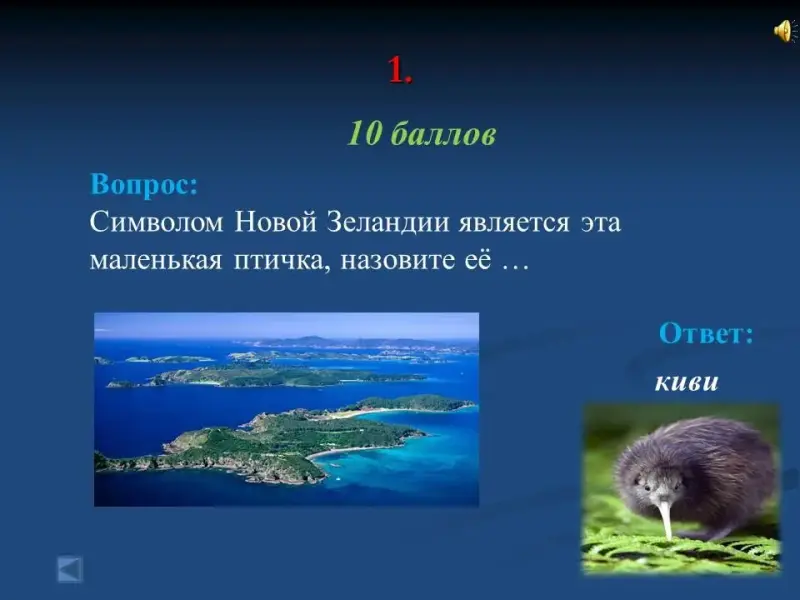 - Символом Новой Зеландии является эта маленькая птичка, назовите её ... киви