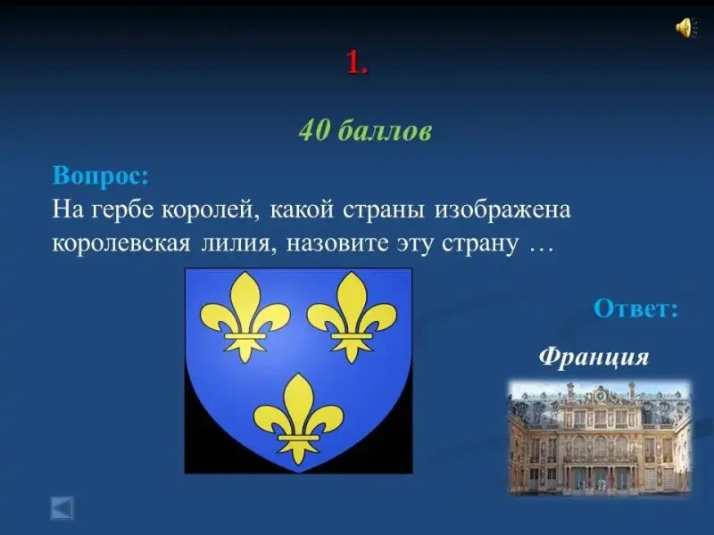 - На гербе королей, какой страны изображена королевская лилия, назовите эту страну ... Франция