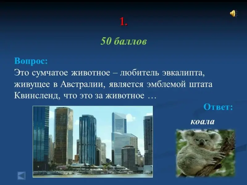 - Это сумчатое животное - любитель эвкалипта, живущее в Австралии, является эмблемой штата Квинсленд, что это за животное ... коала