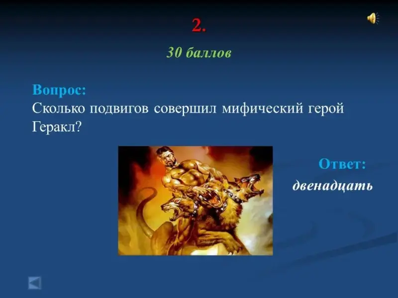 - Сколько подвигов совершил мифический герой Геракл? двенадцать