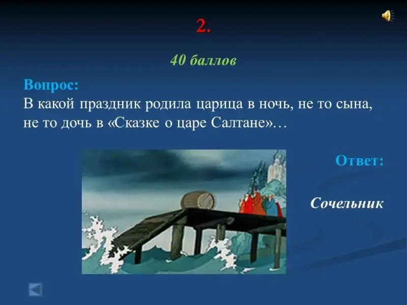 - В какой праздник родила царица в ночь, не то сына, не то дочь в "Сказке о царе Салтане"... Сочельник