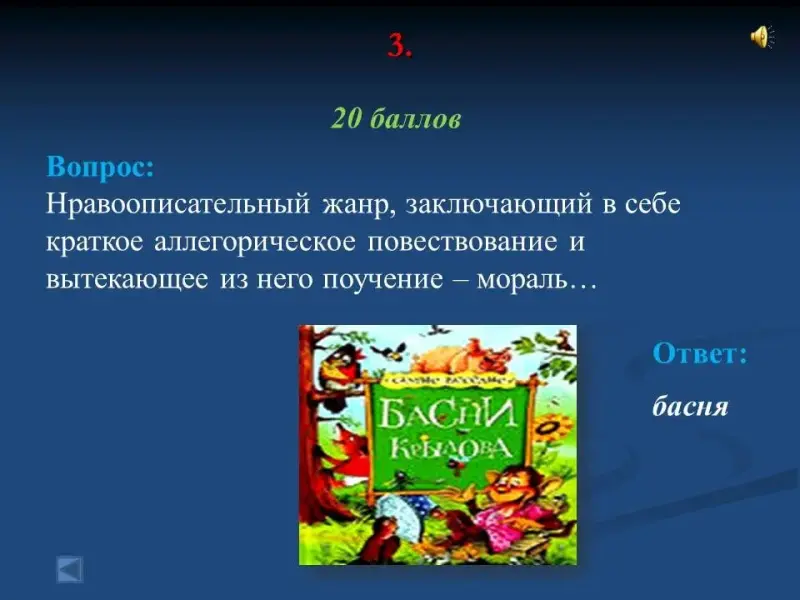 - Нравоописательный жанр, заключающий в себе краткое аллегорическое повествование и вытекающее из него поучение - мораль... басня