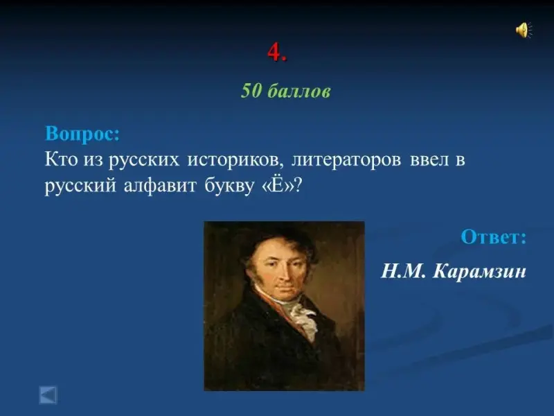 - Кто из русских историков, литераторов ввел в русский алфавит букву "Ё"? Н.М. Карамзин