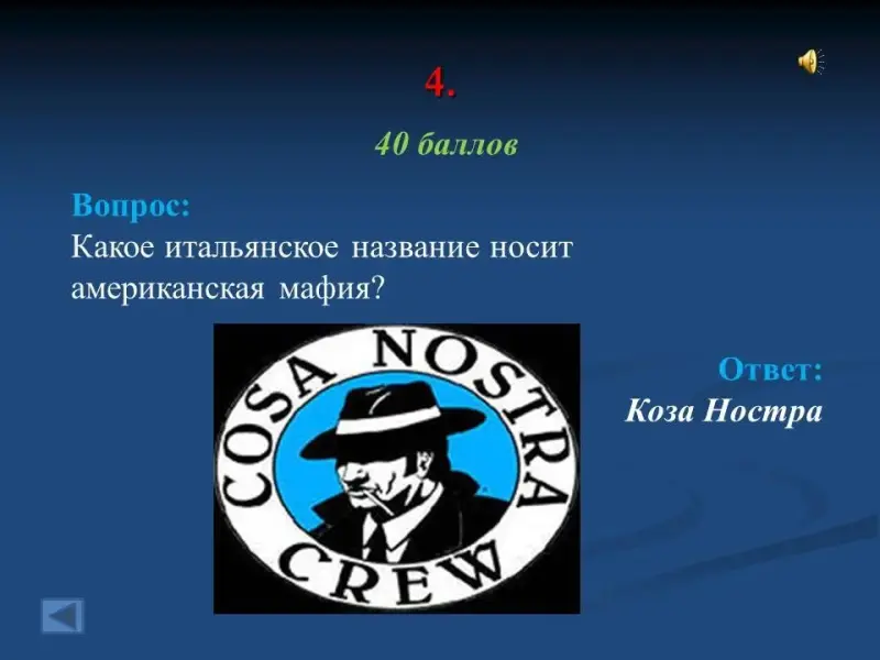 - Какое итальянское название носит американская мафия? Коза Ностра