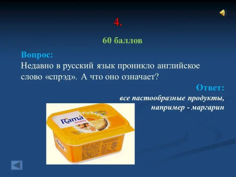 - Недавно в русский язык проникло английское слово "спрэд". А что оно означает? все пастообразные продукты, например - маргарин