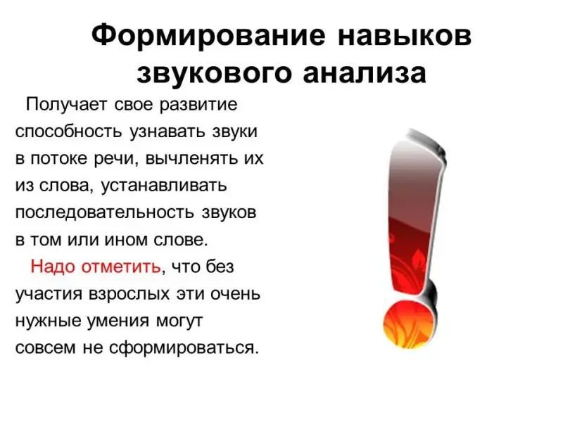 Готовность ребёнка к обучению грамоте аналитико-синтетическим звуковым методом определяется возможностью осознания им звукового строя языка, т.е. переключением внимания от семантики слова к его звуковому составу, к умению услышать в слове определённые звуки, понять, что они расположены в определённой последовательности. Ребёнок с недостаточно сформированными фонематическими представлениями этой готовностью не обладает. Следствием этого являются нарушения письменной речи, а именно дисграфия и дислексия. В настоящее время установлено, что нарушения письма и чтения чаще всего возникают у детей, недостаточно различающих на слух звуки близкие по артикуляционным и акустическим признакам. Без умения чётко дифференцировать на слух звуки родного языка нельзя овладеть навыками звукового анализа и синтеза, а это делает невозможным полноценное усвоение грамоты. Поэтому формирование у детей фонематического восприятия (способности узнавать и различать речевые звуки) является одной из важнейших задач.