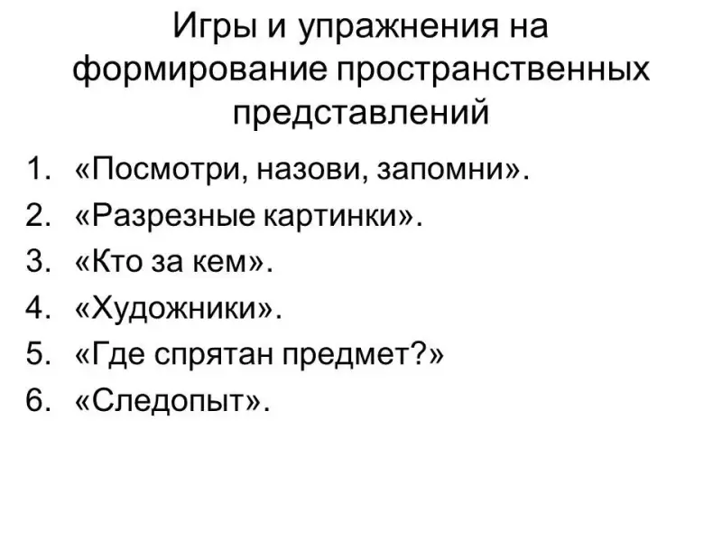 Ряд фигур, изображений предметов или игрушек рассмотреть, перечислить несколько раз, запоминая последовательность. Закрыть. Играющие должны перечислить. После проверяется правильность выполненного задания.
