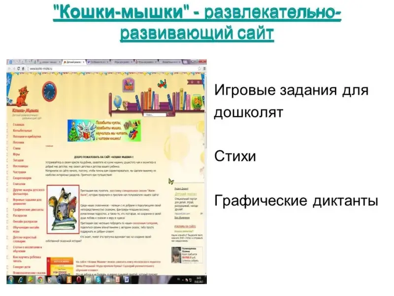 4. "Кошки-мышки" - развлекательно-развивающий сайт (Слайд 25)