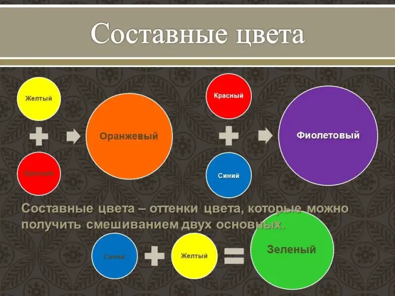 Составные цвета - оттенки цвета, которые можно получить смешиванием двух основных.