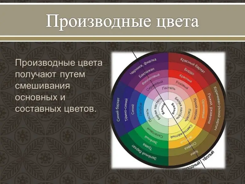 Производные цвета получают путем смешивания основных и составных цветов.