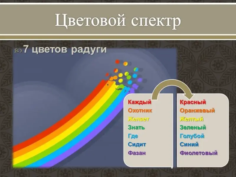 В радуге 7 цветов. Чтобы хорошо запомнить их, давайте выучим следующую присказку, где первая буква каждого слова означает первую букву названия цвета: