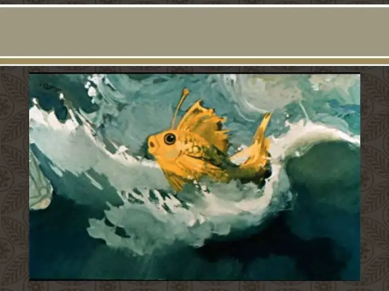 Выполнить рисунок золотой рыбки в синем море.