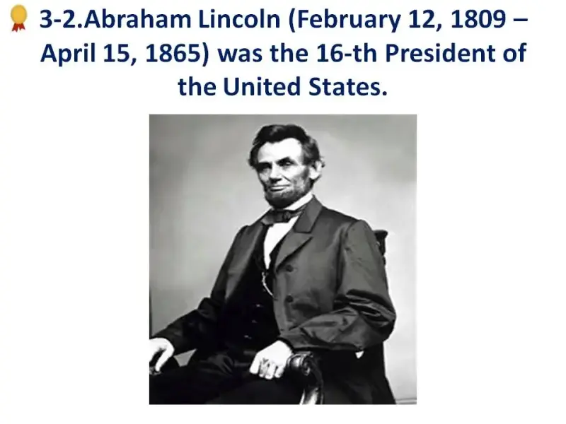 2. What was Abraham Lincoln? a) writer; b) the 16-th President of the USA; c) a teacher; d) Prime Minister