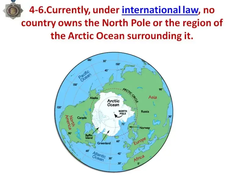 6. The North Pole is owned by: a) Canada , b) no country owns the North Pole, c) the United States of America, d) Norway