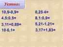 - отработать умения применять арифметические действия с десятичными дробями.