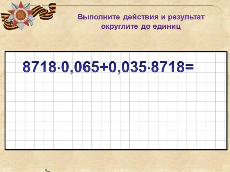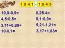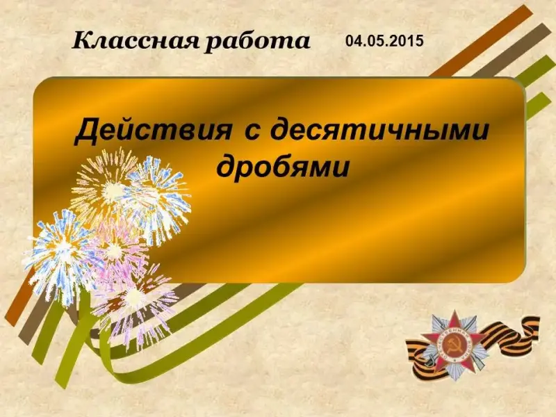 В этом году мы отмечаем 70-летие Победы в ВОВ и посвящаем наш урок "Действия с десятичными дробями этой дате" этой дате (учащиеся записывают тему урока).