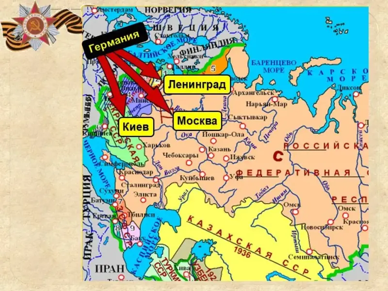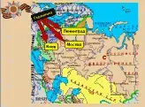 Немецкие войска двигались в трех главных направлениях: Северном (на Ленинград), Центральном (на Москву), южном (на Украину и на Кавказ). |