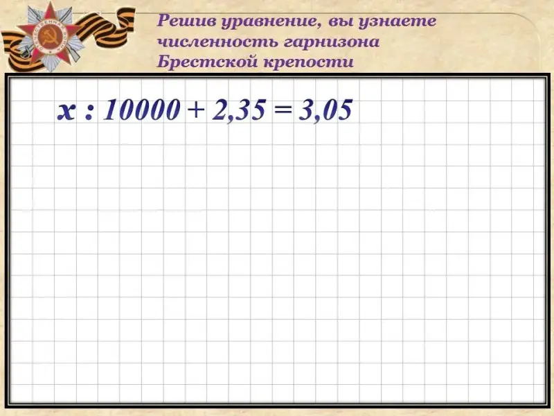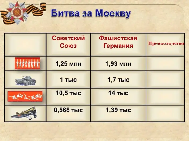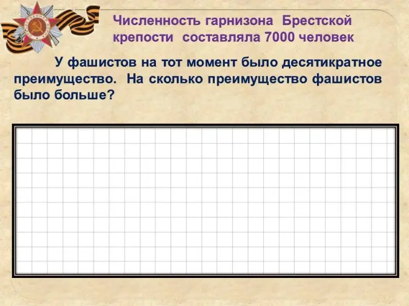 У фашистов на тот момент было десятикратное преимущество. На сколько преимущество фашистов было больше? (один ребенок работает на интерактивной доске, остальные на рабочем листе)