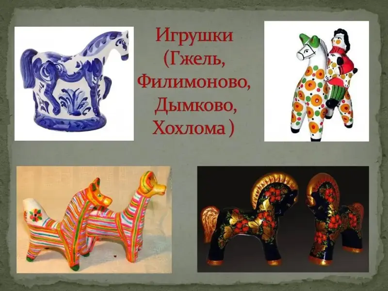 14 и 15 слайды - Образ коня вдохновлял мастеров и художников во все времена. Их делали из различных материалов: глины, дерева, фарфора, расписывали узорами.