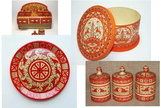 Традиционно предметы, расписанные мезенской росписью, имеют только два цвета - красный и черный.