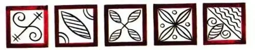 Эти орнаменты в мезенской росписи служат границами между ярусами на изделии. Такие квадраты являются символами земли. Их располагаю в нижней или центральной части изделия.