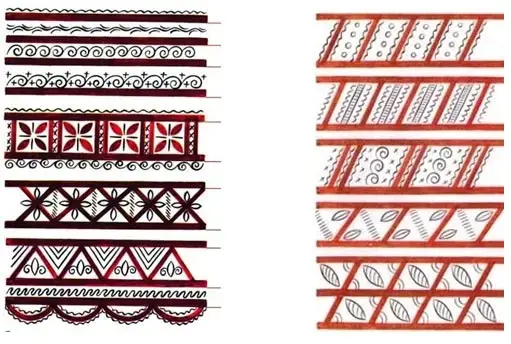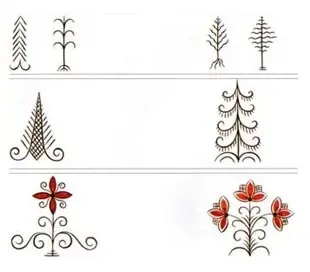 имеют скупую, примитивно-условную форму. Мастер (художник) выстраивает узор сообразно внутреннему настрою и отношению предмету или его будущим владельцам. Тем не менее, подчиняясь строгим правилам