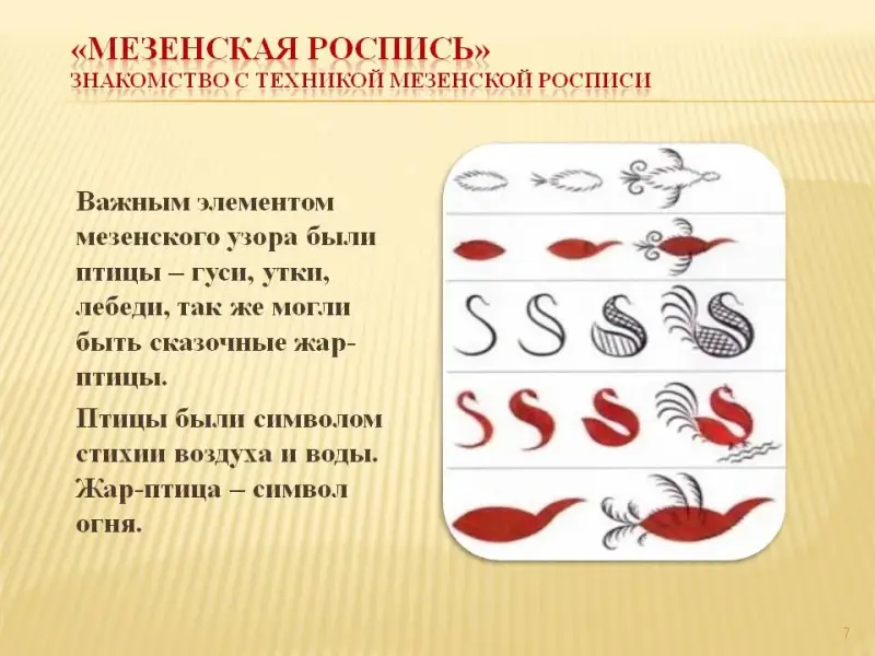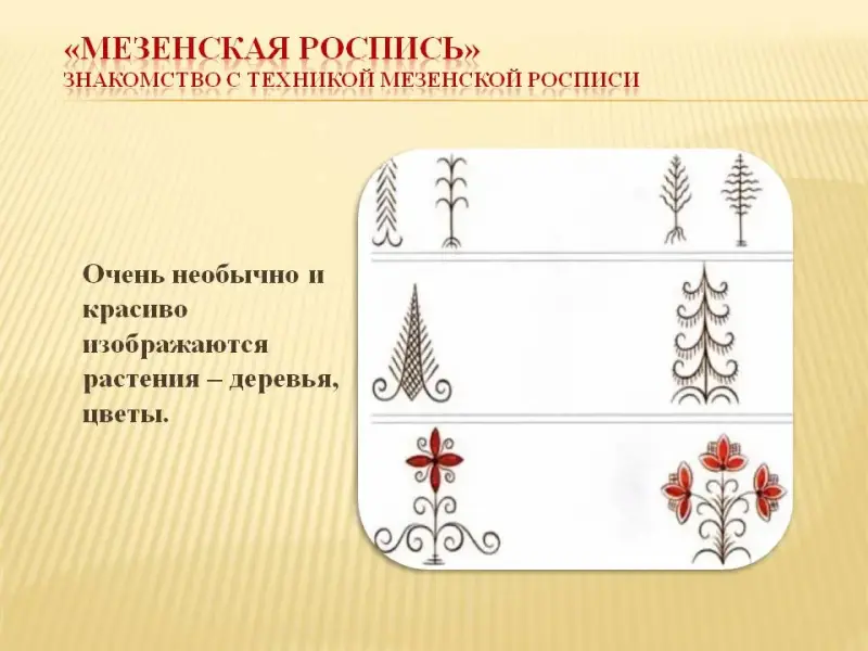 4. Знакомство с техникой Мезенской росписи (5 мин.)