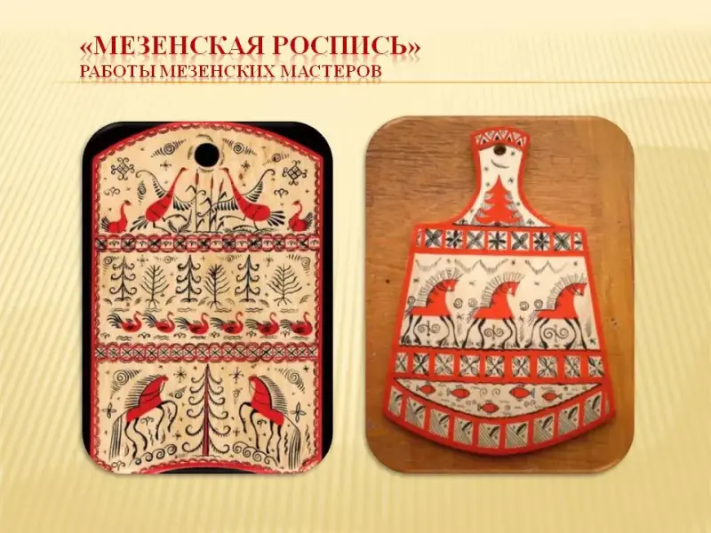 3. Презентация темы: «Мезенская роспись». История возникновения росписи