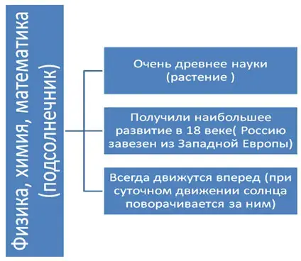 На схеме представлена аналогия между науками естественнонаучного цикла и подсолнечником.