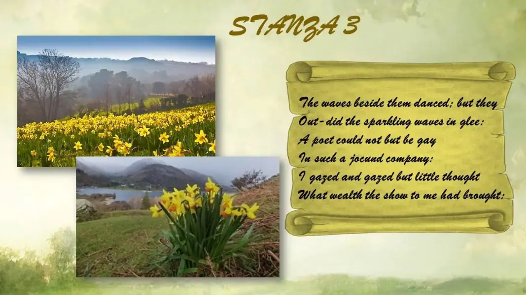 William: They toss and reel and dance and seem as if they laugh with wind that blew upon the lake. Now, you Dorothy.