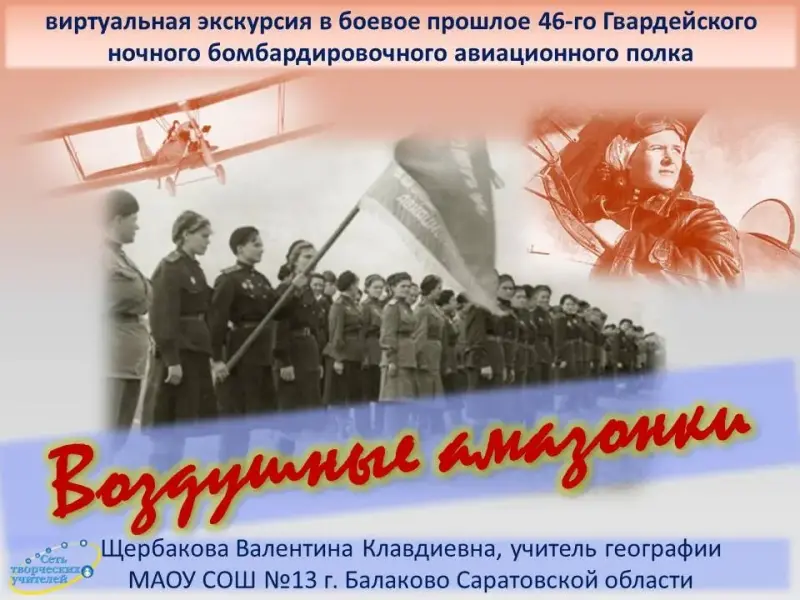 Цель экскурсии: формирование духовно-нравственного представления о роли женщины на войне в ходе знакомства с историей создания и боевыми подругами 46-го Гвардейского ночного бомбардировочного авиационного полка.