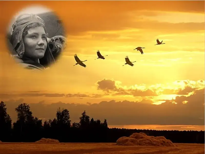 10 слайд. После просмотра добавляется следующее. Евгения Жигуленко, Герой Советского Союза, после войны окончила институт киноматографии. Она сняла фильм "В небе ночные ведьмы" в 1981 году. Вспоминала, что в съёмках ночных полётов над прожекторами участвовали и мужчины. Так и им было страшно...