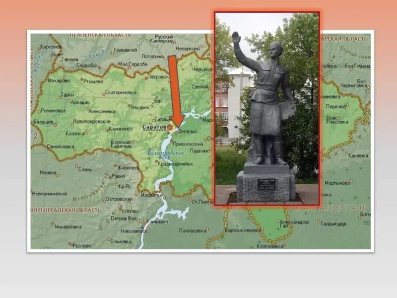 6 слайд. В своей книге "Ночные ведьмы" Герой Советского Союза Раиса Ермолаевна Аронова, родом из Саратова, вспоминала: "От Москвы до Энгельса, небольшого городка на Волге, езды поездом не больше суток. Мы же прибыли туда лишь через неделю: подолгу стояли, пропуская бесконечные военные эшелоны". Здесь в состав авиагруппы вошли почти сто девушек-добровольцев из Саратова. Отбор был очень строгим.