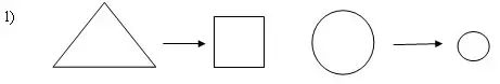 - А теперь ребята, зрительно анализируя расположение фигур, найдите, какие признаки изменились?