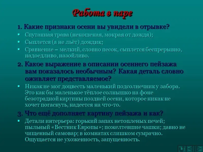 1. Какие признаки осени вы увидели в отрывке?