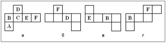 Нанесите буквы на пустые грани другого варианта развертки этого кубика (рис. 16б-г).