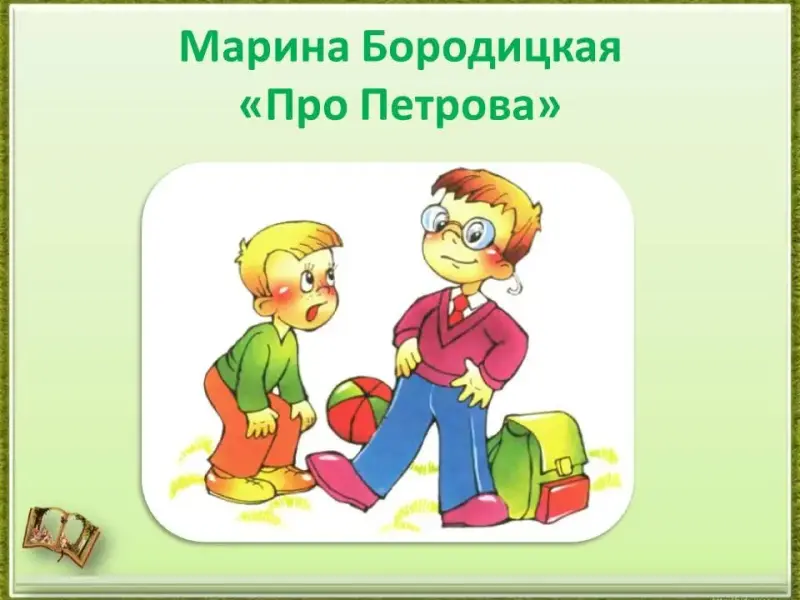 Вед. Ещё одно веселое стихотворение Марины Бородицкой "Про Петрова". Вы услышите в исполнении _________1 А класс.