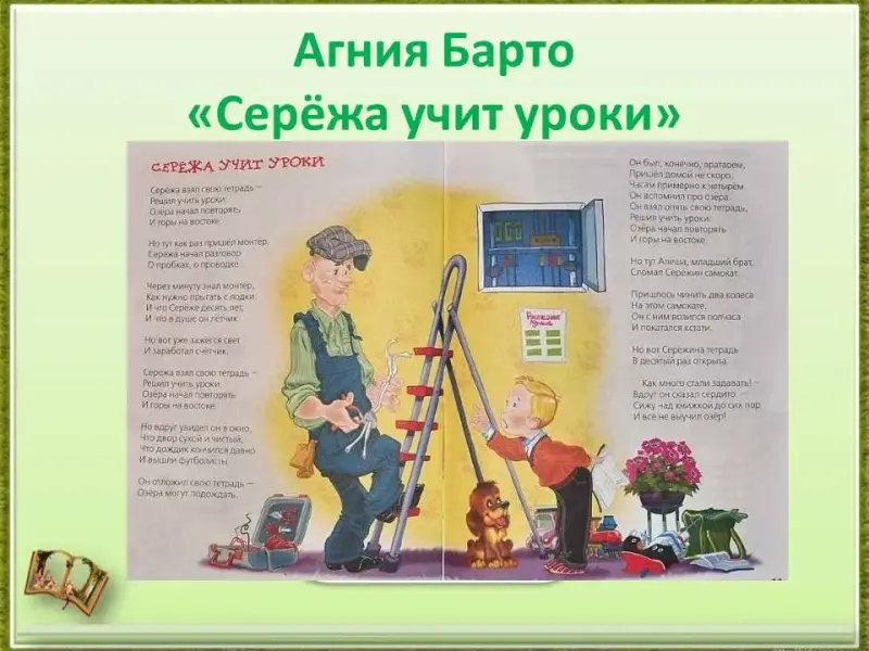 Вед. Пока жюри подводит итоги конкурса, послушайте стих-е Агнии Барто "Сережа учит уроки", стих-е читает актёр. (Запись).
