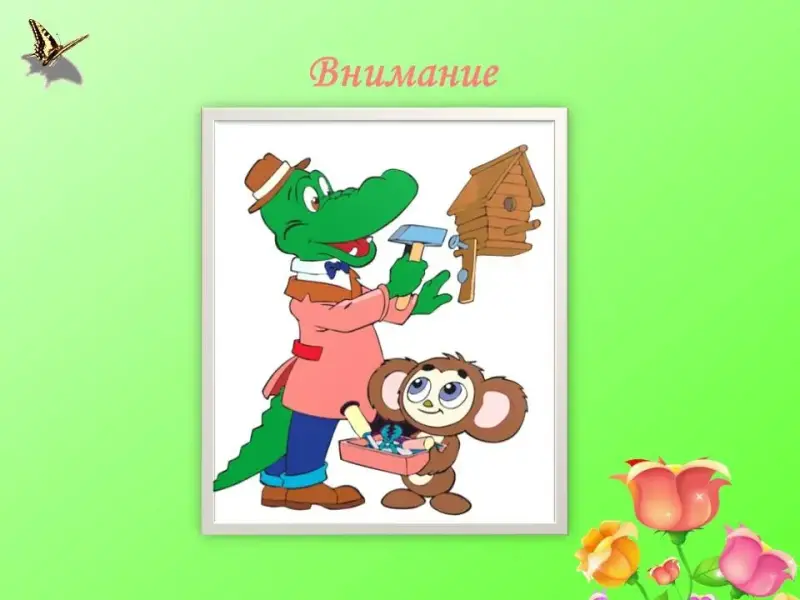 - Что держит Чебурашка? (назвать инструменты)