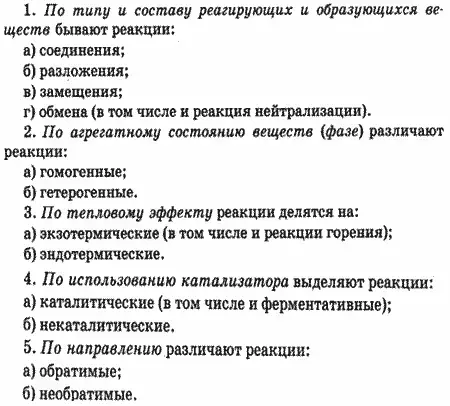 А) Вспомним все известные вам классификации химических реакций и признаки, которые лежат в основе каждой классификации. Повторение. "Типы химических реакций" (по средству обучения 2)